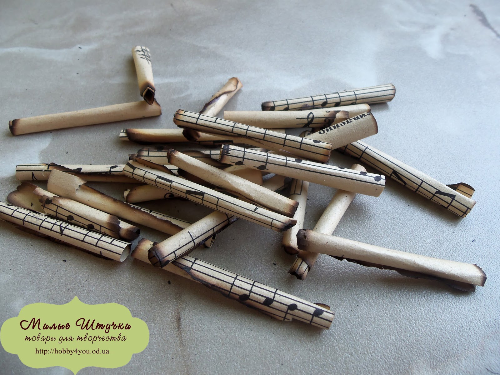 11. Приступим к декорированию горшочка. Для этого мы берем ноты и разрезаем их на квадратики (высота квадратиков не должна быть меньше высоты горшка). Квадраты не обязательно делать ровными, т.к. в дальнейшем этой ровности видно не будет.